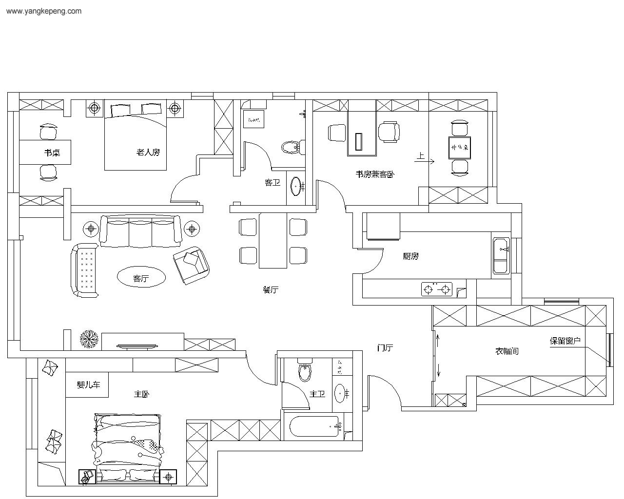 客衛(wèi)的門改在側(cè)面,這面墻就完整了,可以作為餐廳