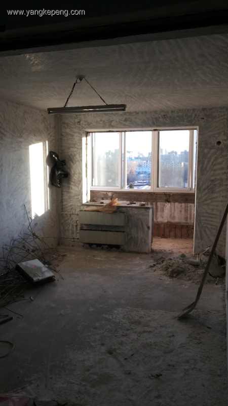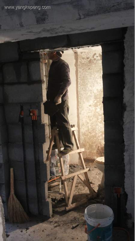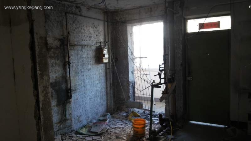 原來廚房的窗戶已經(jīng)變成了門洞,原來的入戶門會是將來的廚房門