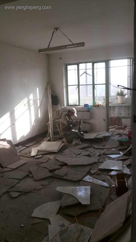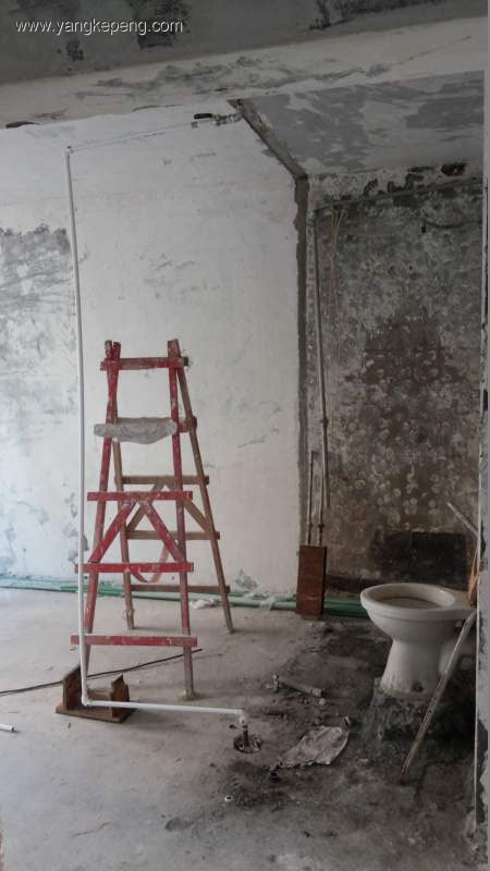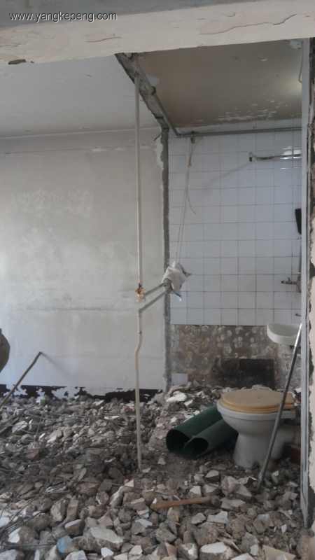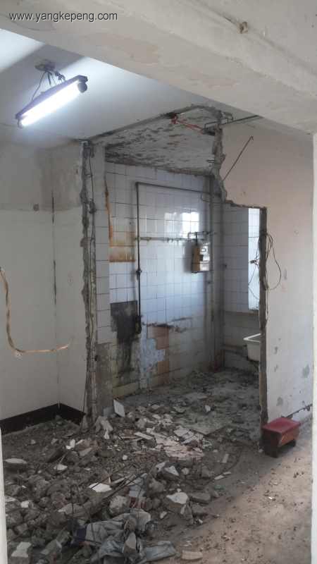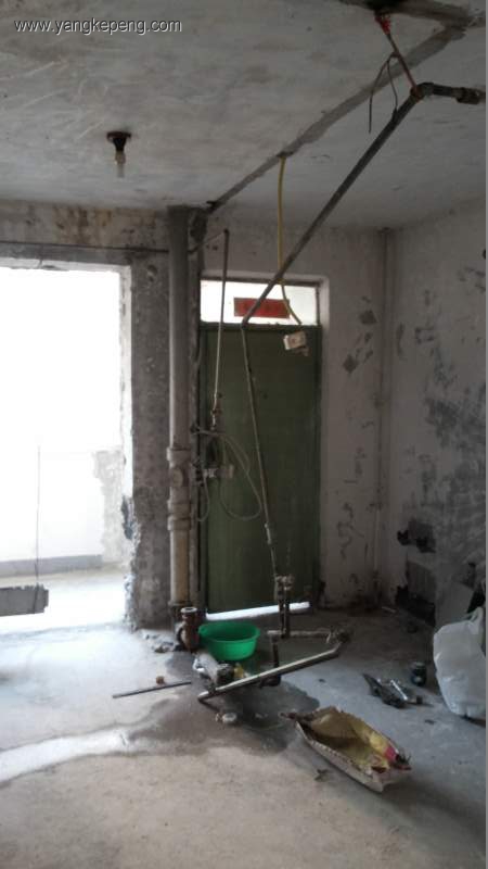 衛(wèi)生間拆除完畢,將來要擴大空間,同樣是上下水,管道,暖氣的改造