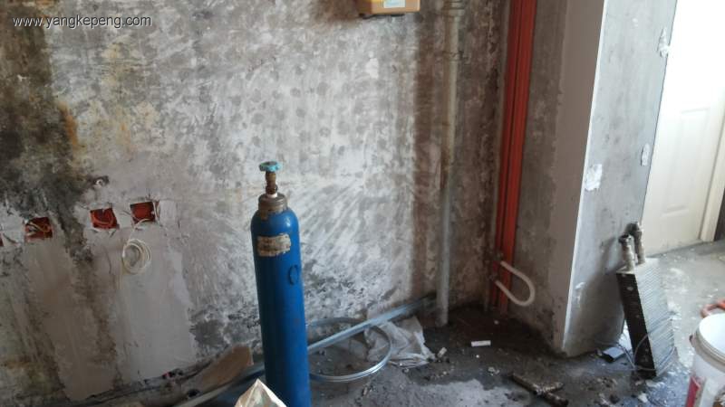 廚房墻體拆除完畢,剩下的需要改造的是一大堆管線,這里是一個大難題,包括燃氣表,暖氣的改造