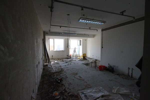 窗戶外面就是立水橋公園和地鐵5號線;房子原來頂面很低,而且地面磚,黑色踢腳線是我無法接受的;一看就是臨時搭建的辦公空間,豪無生氣,冷冰冰的,沒有表情,沒有活力!