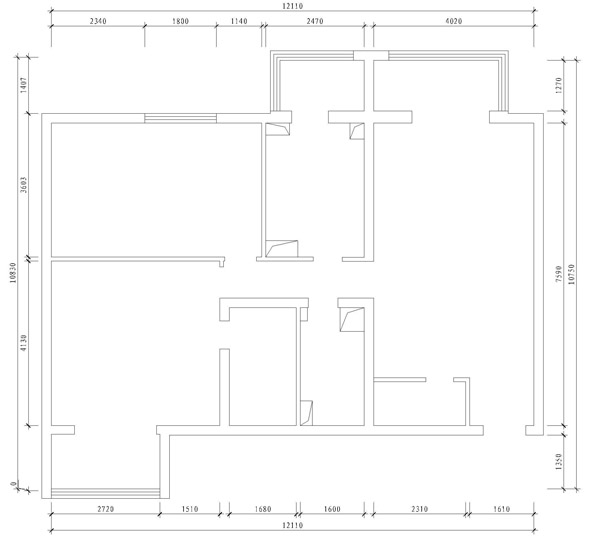 原始結(jié)構(gòu)圖,現(xiàn)在的入戶門是在一個(gè)光線很暗的過道內(nèi);
