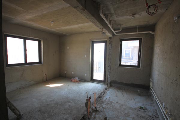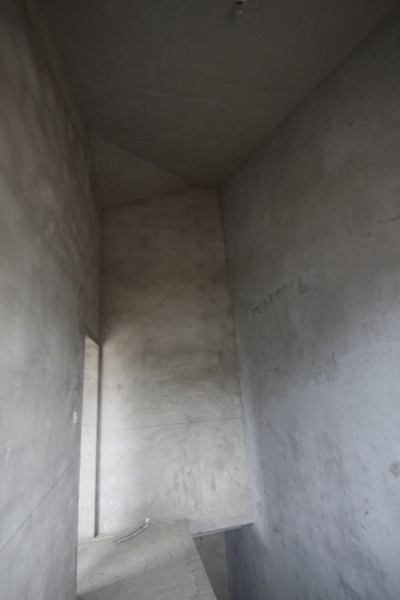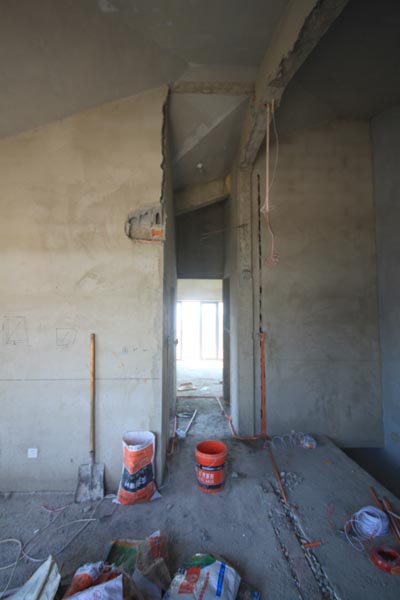 三層樓梯間的墻面已拆除,墻體拆除后這個(gè)墻角對(duì)著人很不舒服,后來(lái)我把它處理成圓角后就舒適多了!