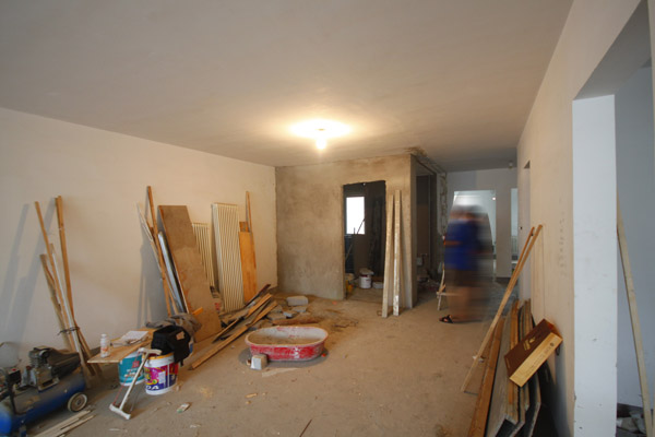 現(xiàn)場情況是,廚房的墻面已經(jīng)改動過兩次,不想再動了!因為頭都已經(jīng)大了......
