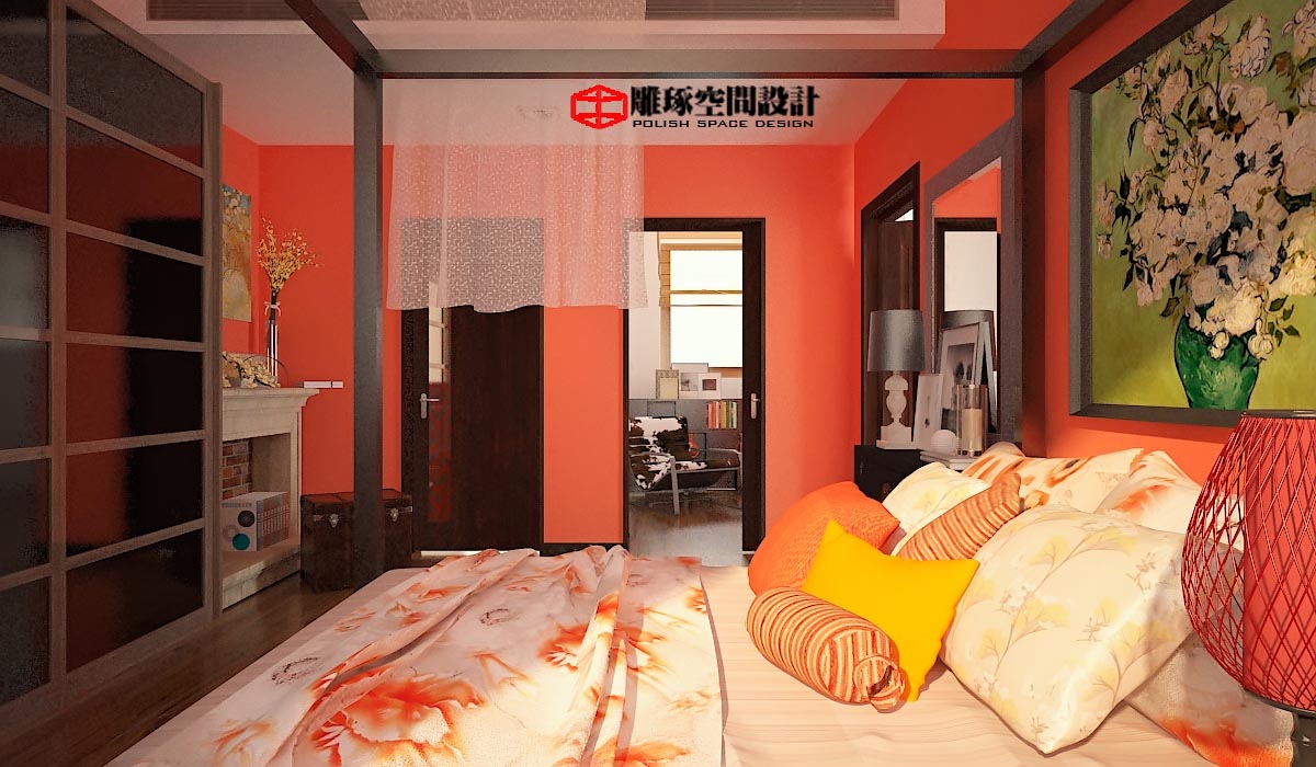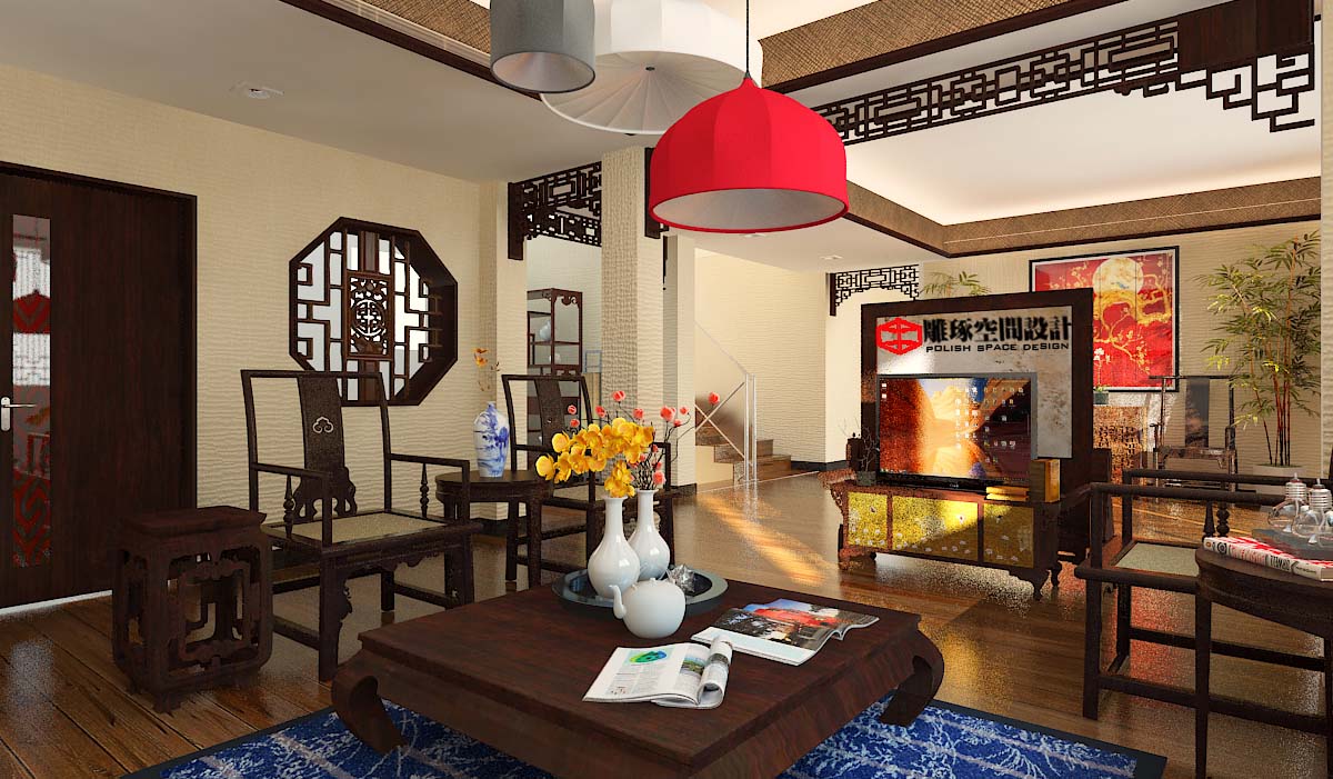 客廳效果,紅色的運(yùn)用讓空間不再沉悶;