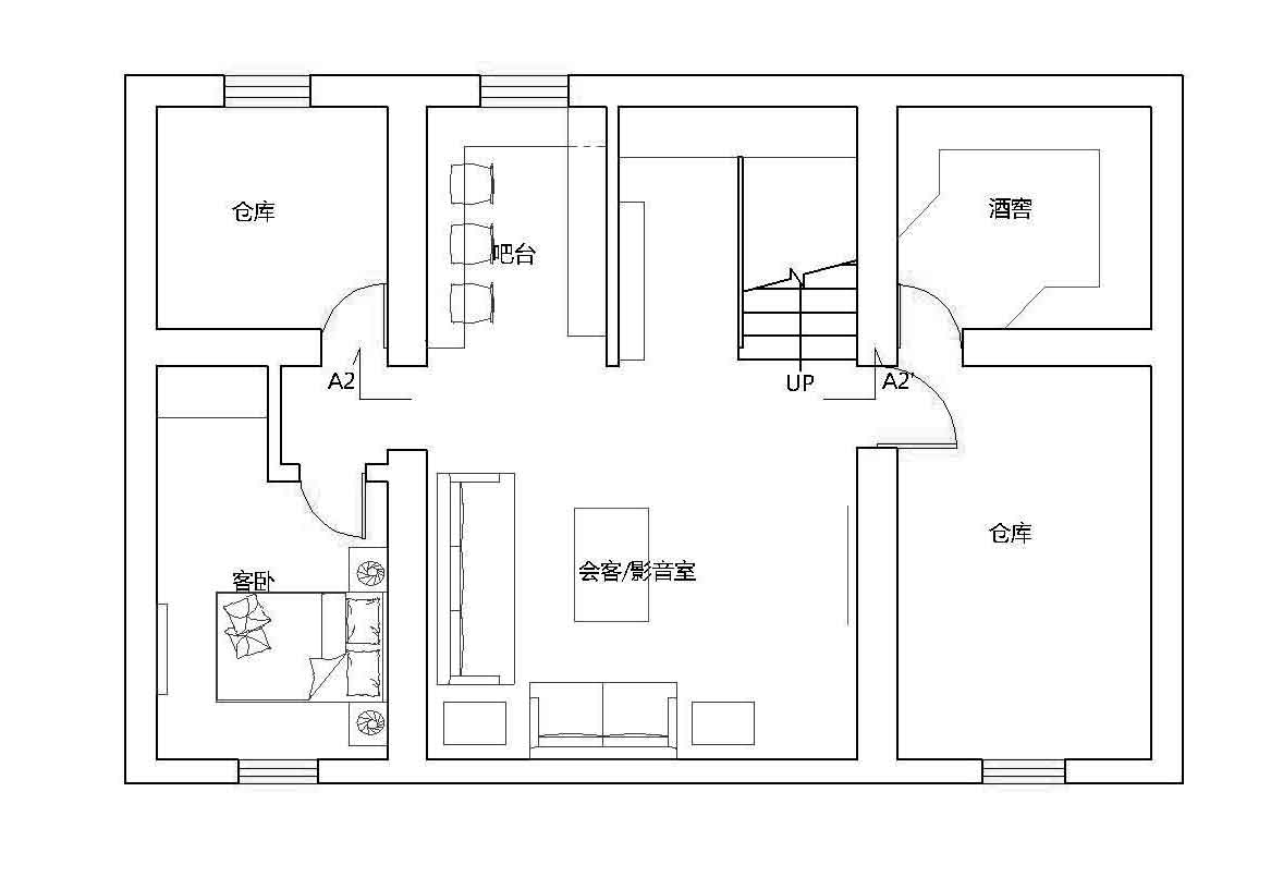 地下一層主要是品酒,喝茶,會(huì)友的空間;我看完現(xiàn)場(chǎng)后把影音室放在了現(xiàn)在的儲(chǔ)藏室,這里是一個(gè)自然間,影音效果會(huì)優(yōu)于開(kāi)敞空間!現(xiàn)在的影音室位置作為一個(gè)喝茶聊天的空間;