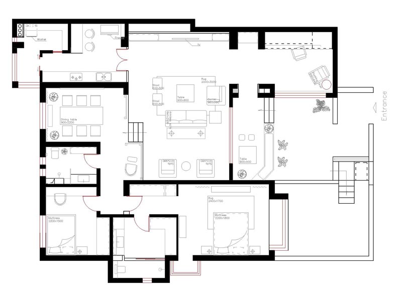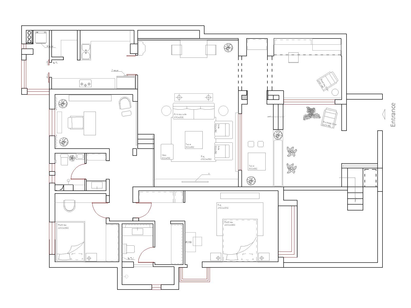 最終定稿平面布置圖,尊重業(yè)主朋友的生活習(xí)慣,沙發(fā)的擺放還是按他們之前房子的的擺放方式來(lái)擺放;
