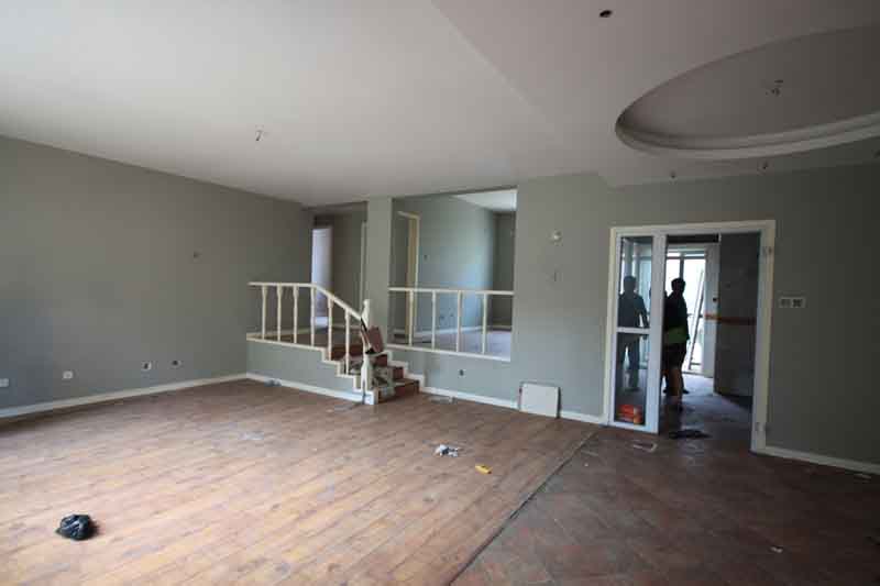 這是現(xiàn)場(chǎng)初步考慮的沙發(fā)擺放,背對(duì)進(jìn)來(lái)的客人,很不舒服;