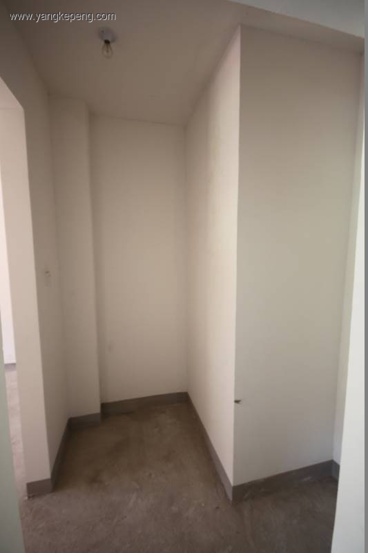 原始結(jié)構(gòu)圖,進門只對客衛(wèi),真不知道建筑師設(shè)計師時是是怎么考慮的?這個很忌諱,心里會很不舒服;另外門廳左側(cè)還有一狹窄的細(xì)長條空間,怎么利用呢?