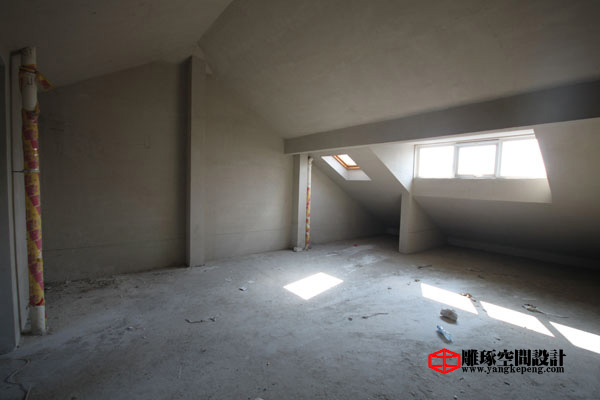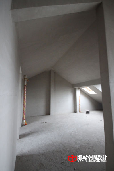 這是二樓主臥看斜屋頂位置,樓梯口就設(shè)置在此,此處采光極差,而且是視覺(jué)死角,有壓抑,憋悶的感覺(jué)!