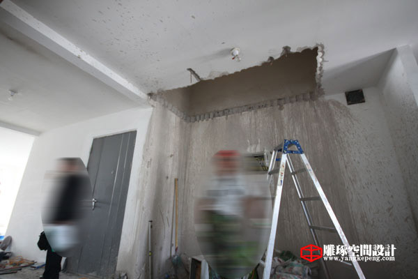 這是原樓梯間,如果將樓梯設(shè)置在這里,樓上樓下很大空間將得不到有效利用!原頂面有兩道梁,在設(shè)計(jì)時(shí)保留未動(dòng),只是又新設(shè)計(jì)了幾道梁與之交融在一起,真真假假,假假真真!