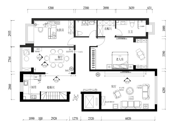 一層設(shè)計(jì)后平面布置圖,我勘察完現(xiàn)場(chǎng)提出了自己的想法,建議把樓梯設(shè)置在原來(lái)餐廳位置,將餐廳設(shè)置在原來(lái)有樓梯口的房間內(nèi),將連接原來(lái)餐廳的墻體打開(kāi),這樣的話樓梯不占用過(guò)道,空間得到有效利用,視野開(kāi)闊,光線充足,餐廳也變的開(kāi)敞,光線充足,能坐下全家人就餐!