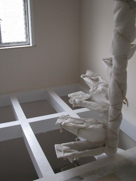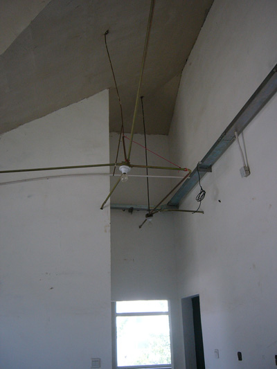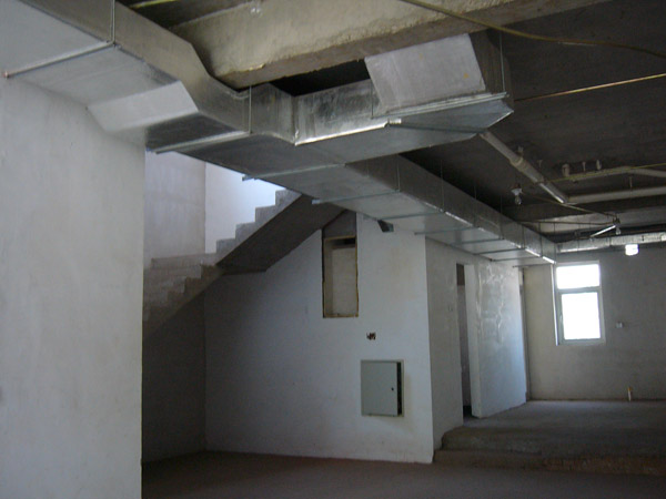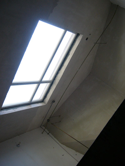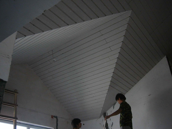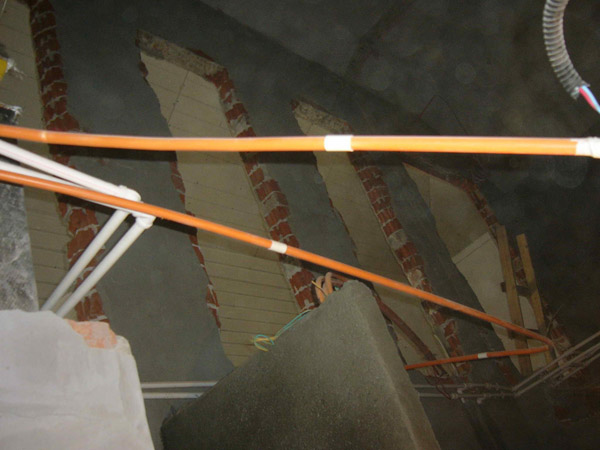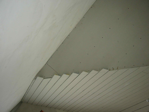 樓梯間上方房頂也是不規(guī)則形狀,而且還有很多管線!
