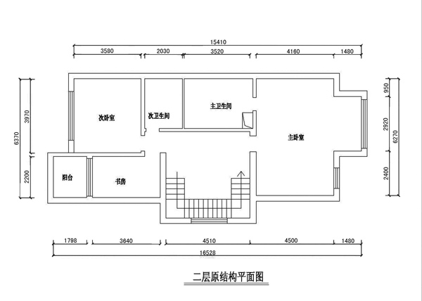 二層原始平面結(jié)構(gòu),樓梯很陡且阻擋了光線,使一層的采光受到影響