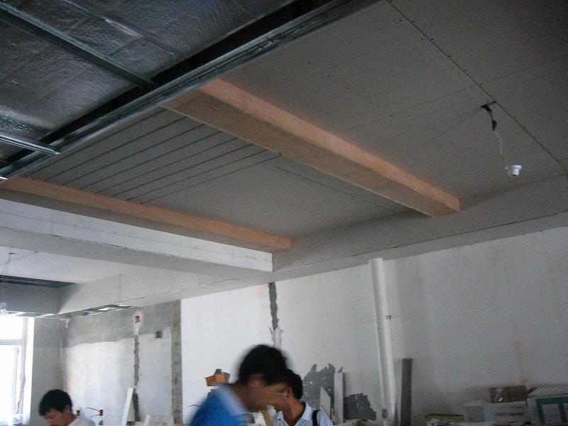 用石膏板修正原不規(guī)整的頂面,留一公分的凹槽起裝飾作用