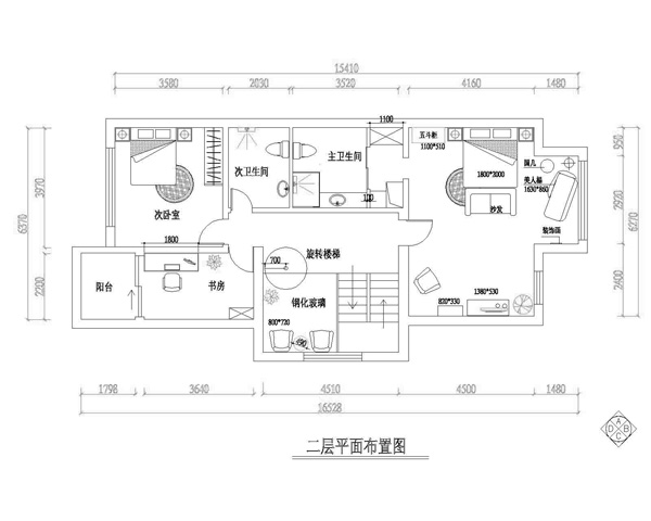 二層設(shè)計(jì)后平面布置圖,樓梯方向改變,不僅使樓梯上下更舒適,而且新設(shè)計(jì)出了一塊休閑區(qū)域,與此同時(shí),樓下位置的空間也得到了解放,為不阻擋樓下的采光,新設(shè)計(jì)的區(qū)域地面采取了鋼化玻璃;新設(shè)計(jì)出的三層是在二層兩個(gè)洗手間的上方,請(qǐng)看后面的圖片