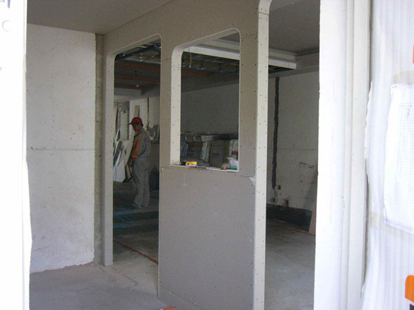 門廳側(cè)面還有兩層臺(tái)階,這使起居室很局促,后將此處臺(tái)階內(nèi)移一米多的距離