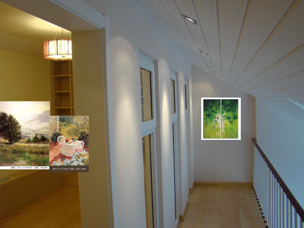 這是我為客戶選好的部分畫面內(nèi)容,輕松淡雅的畫面與二層休閑空間很搭!