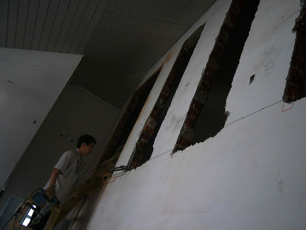 考慮到采光通風(fēng),隔音以及力學(xué)諸多方面,將此面墻鑿開幾個(gè)通地落地窗,還設(shè)計(jì)了可以開啟的小窗戶, 便于通風(fēng)