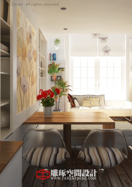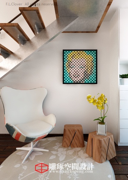 本案是位于北苑路北的美立方LOFT公寓,由于有著近4.6米的層高,這使得雖然一層只有26平米的空間并不顯得局促。在拆除了一部分原先的二層后,挑高的空間瞬間就豁然開朗了。雖然會犧牲一部分的使用面積,但換來的是開闊的視野和一整面的落地窗,讓人不覺得像是只有20多平的空間。大大的窗戶多少有些豪宅風(fēng)范,配合了一點現(xiàn)代簡歐的味道,讓LOFT成為了城市中夢想的花園。