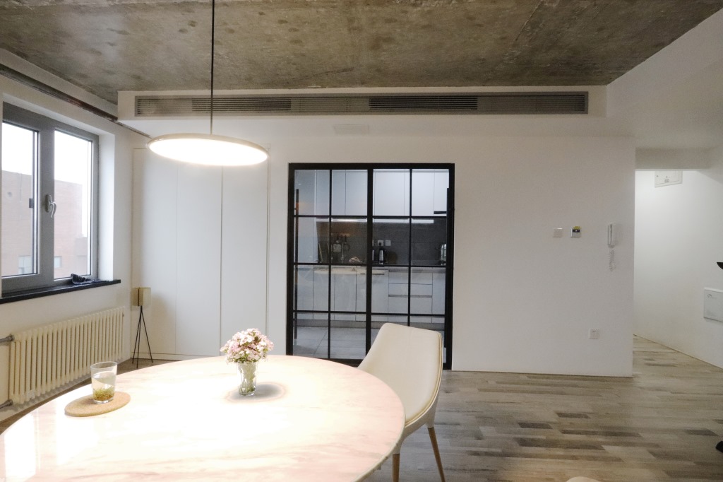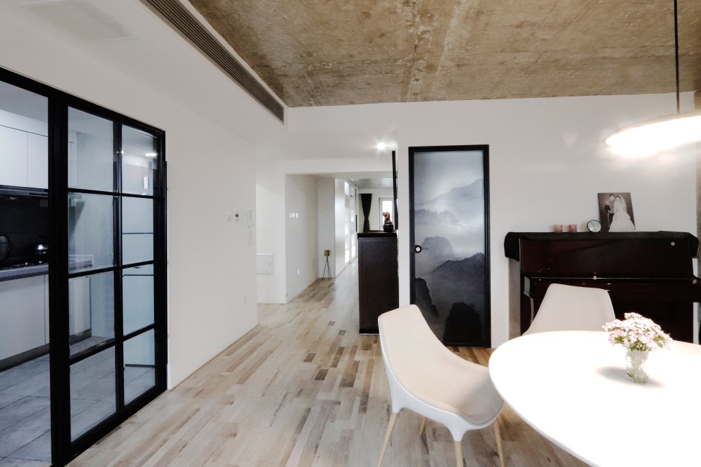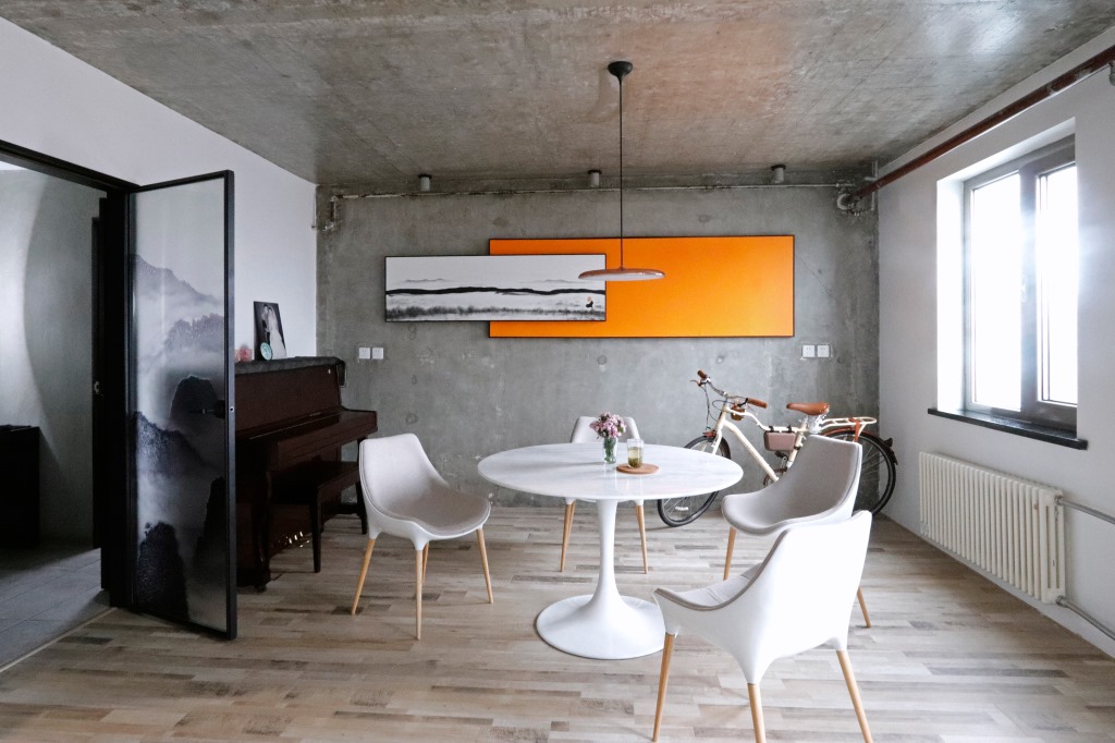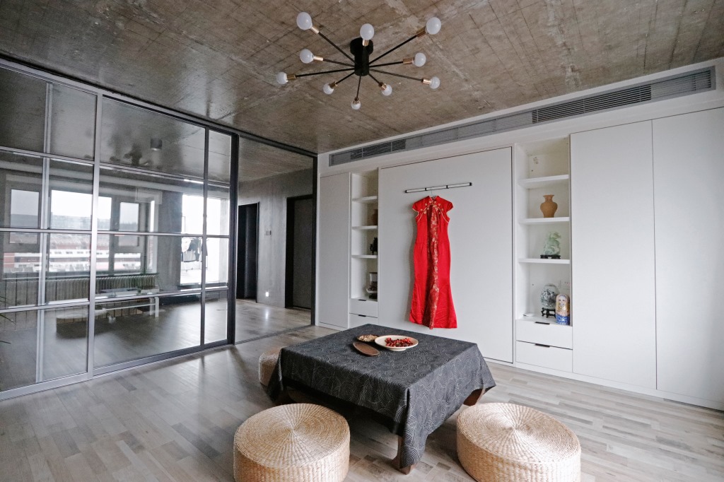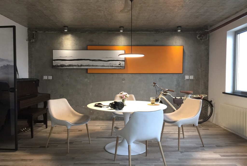 在混凝土墻面的襯托下,使精致的構(gòu)件,家具的優(yōu)雅更加深入人心;二者的反差所形成一種張力,震撼之余一種靜謐和安然在內(nèi)心升騰,所形成的彈性仿佛具有強(qiáng)大的包容力,讓人從中得到寬慰,內(nèi)心從容安靜。