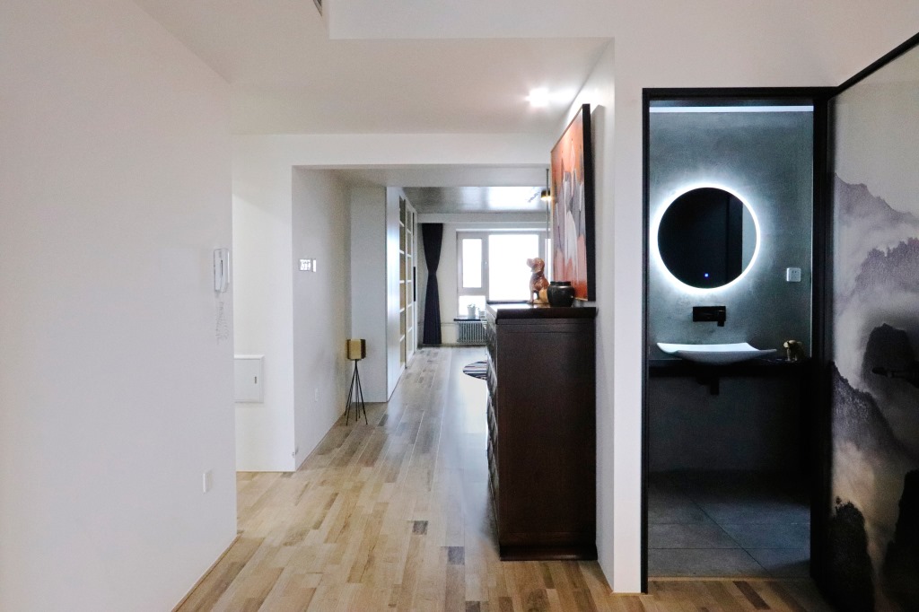 原有的家具在這里重新有了安放之地;定制的油畫點(diǎn)亮了整個(gè)空間;鏡面將室內(nèi)空間映射進(jìn)去,增添了幾分趣味性!