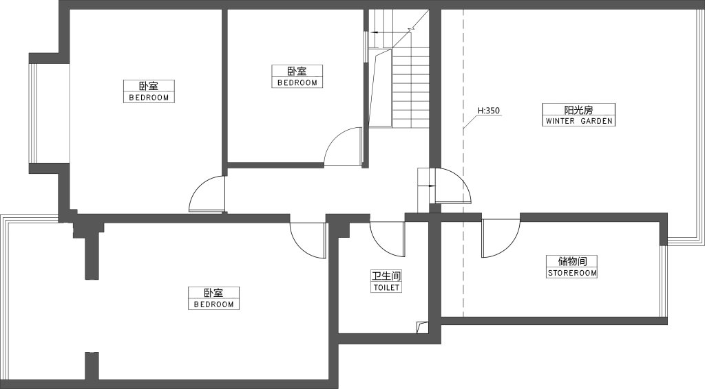 二層拆除了樓梯邊兩間小臥室,將整體的空間變成了一個(gè)開敞的空間,在此基礎(chǔ)上用透明玻璃移門進(jìn)行分隔,增加了空間的層次,來(lái)客人時(shí)也可以做為一間臥室使用,陽(yáng)光房和儲(chǔ)物間合二為一,作為舞蹈房和影音室使用。