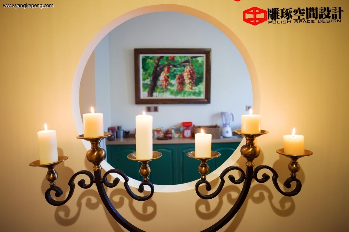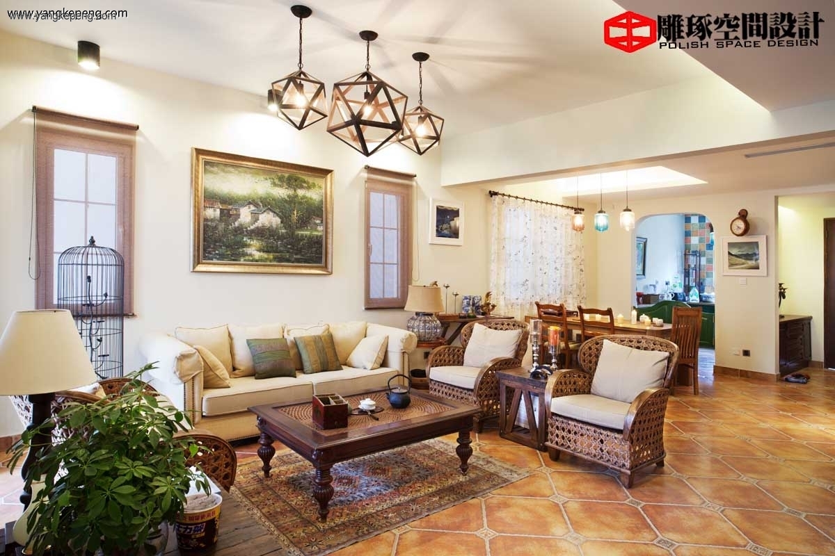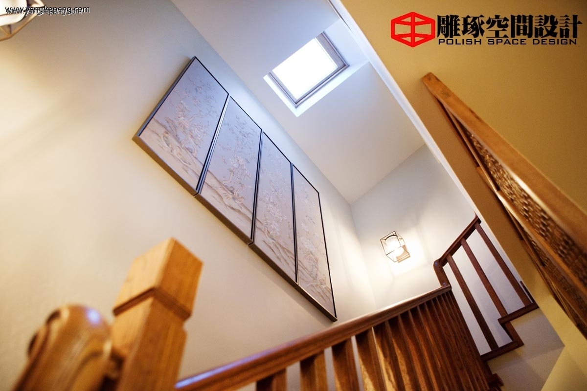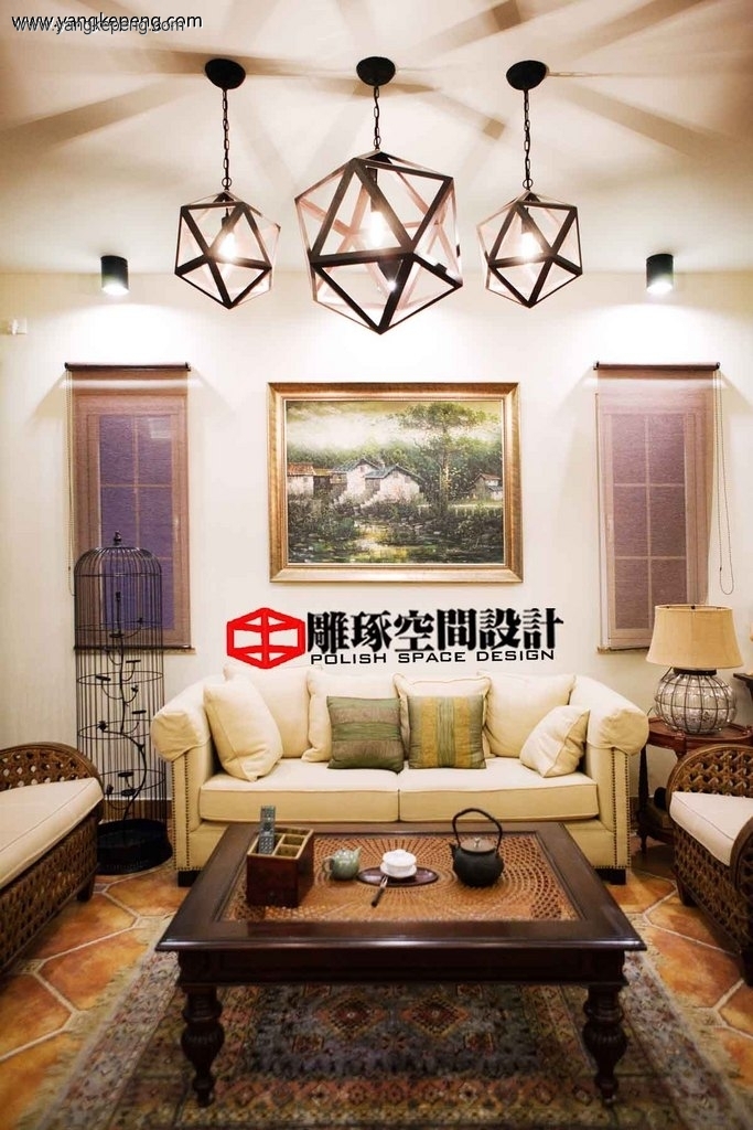 別墅結(jié)構(gòu)是按照西方的生活習慣來設計的,孰不知這種設計很不適合中國人的生活習慣,比如原始電視線路是在樓梯正對的這面墻上,按照西方的家具擺放則是背后是樓梯,按照中國人的習慣進門直沖沙發(fā)心里是很不舒服的;于是我把原有家具和電視的擺放對調(diào),電視后面用雙面雕花的門扇來分割空間,這樣問題就解決了,而且空間視覺不但沒有阻隔感,還給空間增加了一道美麗的風景,每當夕陽下的時候,夕陽透過雕花,將圖案投