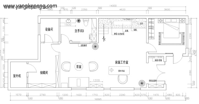 負一層平面布置圖,業(yè)主朋友會經(jīng)常在家辦公,工作室連接下沉庭院,綠意盎然!