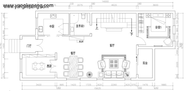 一層原始平面圖,我發(fā)現(xiàn)現(xiàn)在的很多別墅的結(jié)構(gòu)都是按照西方的生活習慣來設計的,孰不知這種設計很不適合中國人的生活習慣,比如原始電視線路是在樓梯正對的這面墻上,按照西方的家具擺放則是背后是樓梯或者背后是餐桌,按照中國人的習慣進門直沖沙發(fā)心里是很不舒服的;如果把電視對調(diào),電視如何擺放?怎么能更美觀?更舒適?這是需要思考的問題;經(jīng)過和業(yè)主朋友的反復溝通,還有從發(fā)來的她喜歡的產(chǎn)品和圖片照片看,她喜歡一些質(zhì)樸的,原木自然的,有中國味道和田園味道的居室空間;