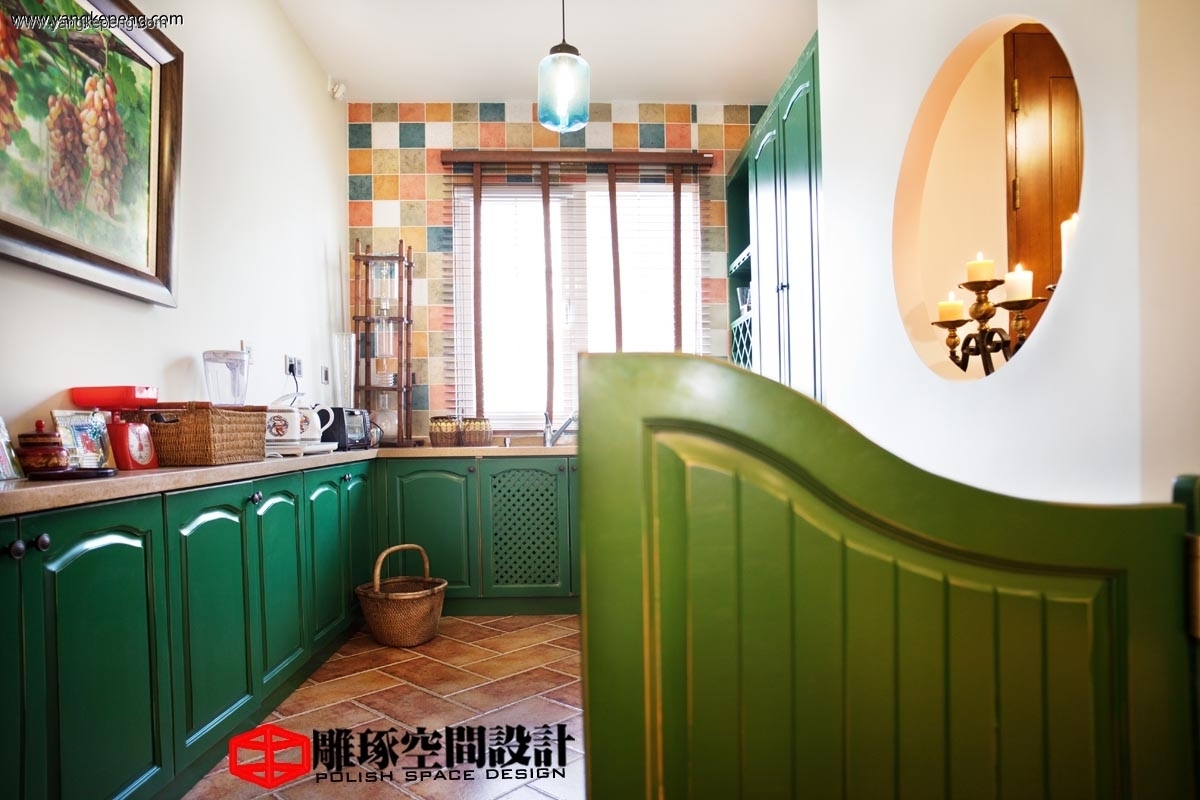 一層門廳處,原來是一個開敞的空間,還有一根結(jié)構(gòu)柱,建筑師設計這塊空間是留給做西廚的;我在設計時將這個空間做一隔斷,加一圓窗用來借景,下面用來擺放鞋柜,這樣既實現(xiàn)了空間的趣味性,也滿足了實際生活中的使用需求;另外與之相鄰的中廚,我把原來的門洞擴大,設計成推拉門,這樣可以根據(jù)需要,可以實現(xiàn)這個空間的完全開放與閉合;