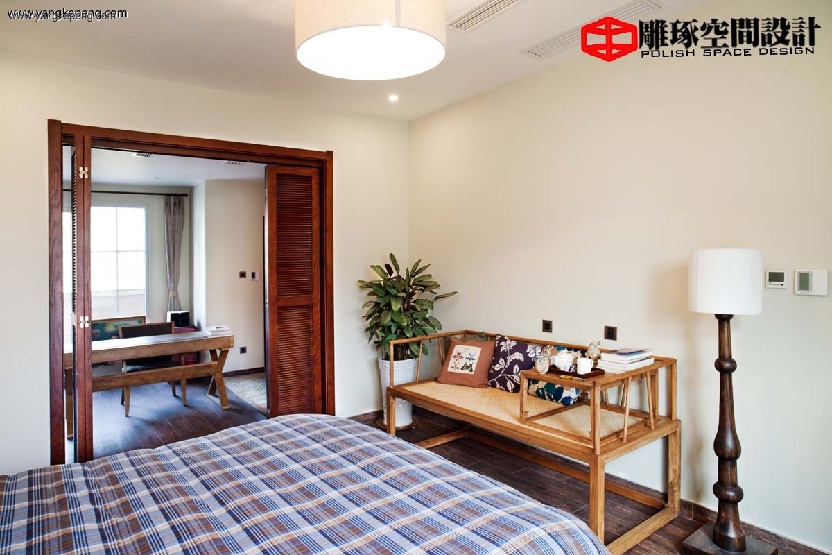 來到二層是主人和孩子的休息空間,原來的主臥和主衛(wèi)之間有些墻體分隔,空間屬性不明朗,而且行走也不方便;我在設計時將這個空間重新規(guī)劃,拆除零散的墻體,實現(xiàn)了空間的合并于對話,使用起來也變得格外舒適,還是原來的面積,但空間似乎變大了許多!這就是設計的魅力所在!業(yè)主之前的一些家具和燈具擺放在這個空間里,同樣有著不俗的表現(xiàn);