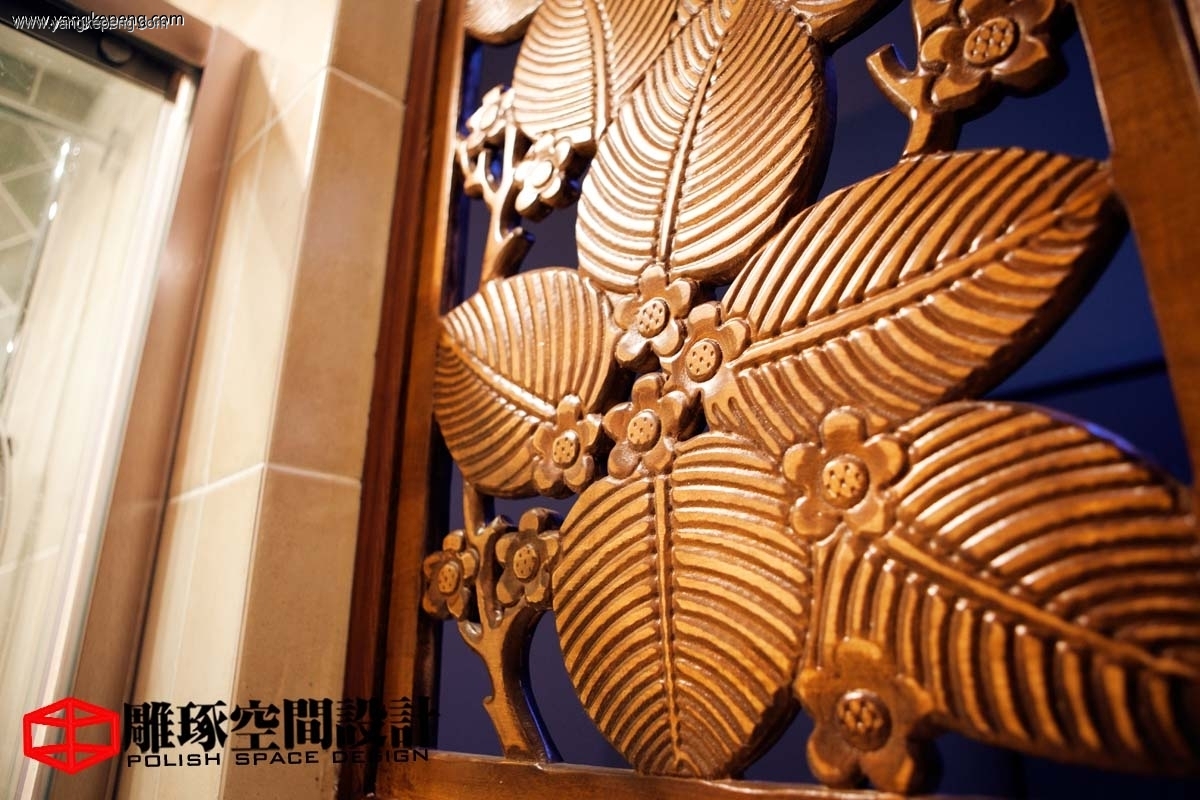 墻面上的芭蕉葉雕花,給這個空間增添了一絲靈動的氣氛;